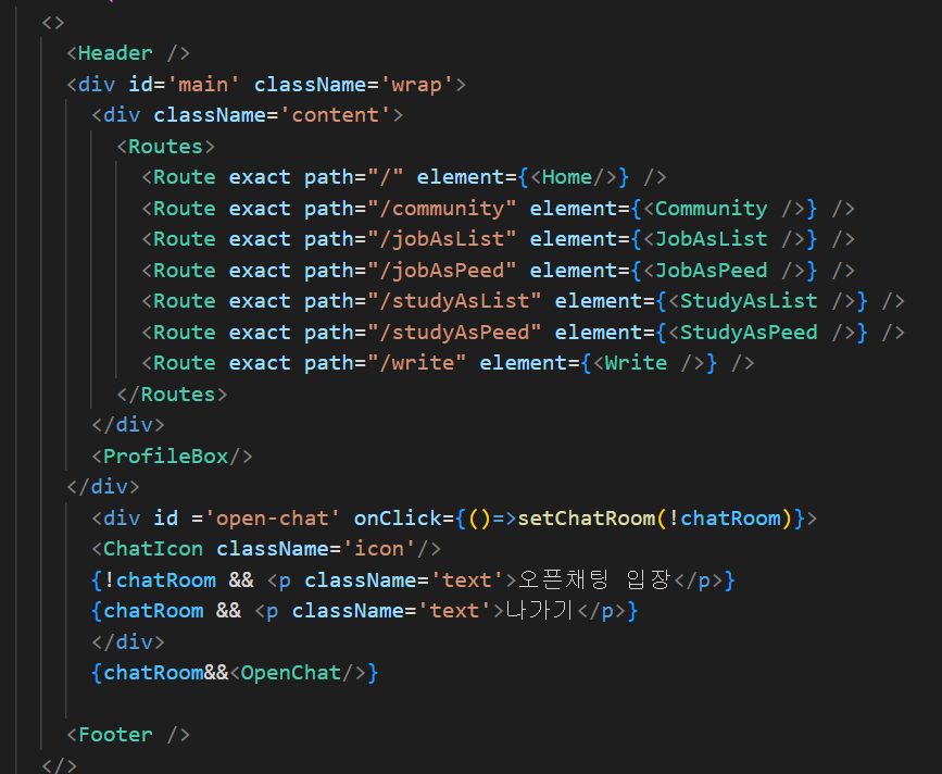 결과적으로 성공하긴 했지만 App.js가 좀 지저분해진 것 같다. 일단 프로젝트를 모두 완성해서 배포 후 클린코드로 리팩토링을 해야겠다.