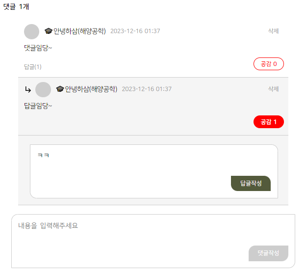 댓글과 답글이 가진 속성은 거의 비슷해서 사실 상속관계로 만들 수 있지 않을까 생각해봤는데