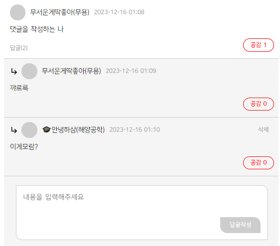 그래서 그냥 연한 회색처리로 댓글/답글을 구분하기로 했음.